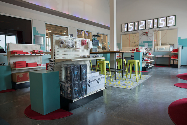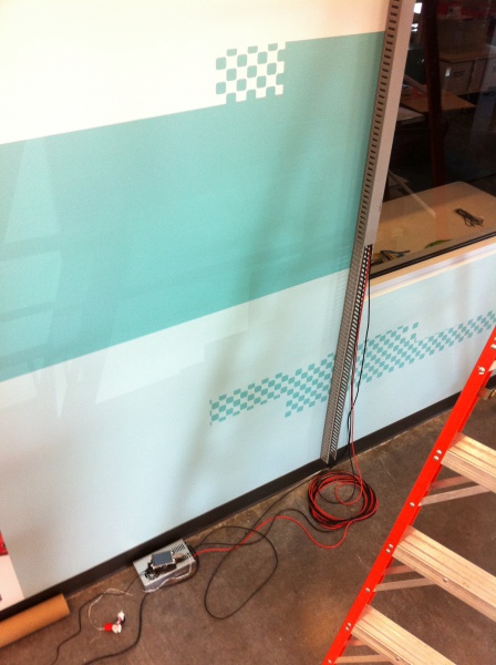 While designing the layout for the new SparkFun Emporium, I was given the opportunity to design a large LED art installation. I’ve helped build LED installations before, but had never had the opportunity to design one from the ground up. Thus was born the CandyBar, a 46-foot LED bar consisting of 8 meters of addressable LED strips (480 LEDs total), all controlled via a FadeCandy connected to a Raspberry Pi running the FadeCandy server.