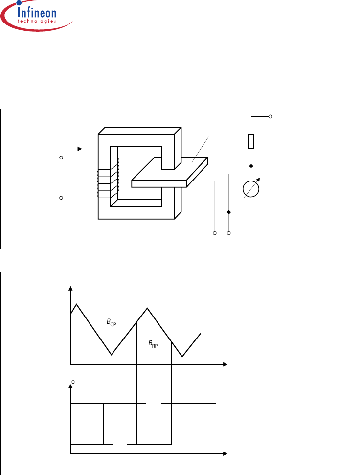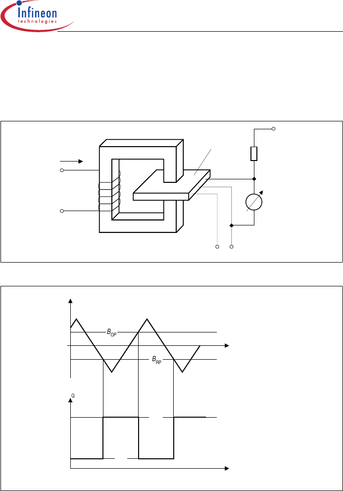 chip surface induces a voltage at the hall probe. This voltage is amplified and switches a Schmitt-
