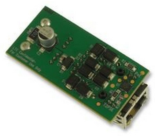 The DC1415A board includes the entire front end of a typical PD; RJ45 connector, Ethernet magnetics, bridge rectifiers, surge prpotection, and PD controller, all in a 1” x 2” board. Two status indicators are also included: one shows the PSE is powering the PD; and the other shows the PSE performed 2-event classification. A small load sufficient to assure the PSE maintains power to the PD is also included.