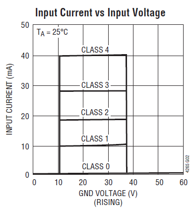 The LTC4265 is compliant to IEEE Standard 802.3at. It can handle up to 25.5 W and recognizes 2-event classification.